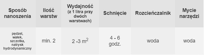 - Nakładanie farby można rozpocząć po wyschnięciu gruntu tj. po min. 24 godz. od zakończenia gruntowania przy wysychaniu w warunkach optymalnych.