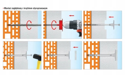 2. Należy dobrać odpowiednią długość łącznika, tak aby strefa rozporowa znajdowała się w materiale konstrukcyjnym ściany
