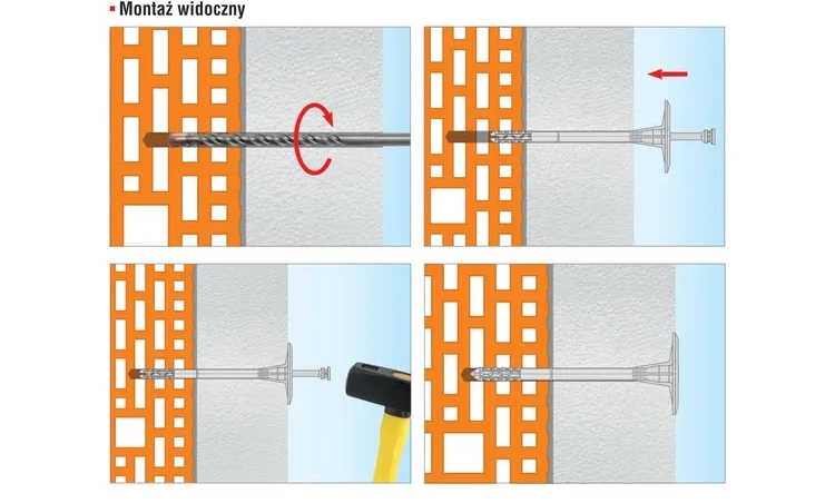11. Łączniki należy mocować tak, aby miejsce montażu pokrywało się z miejscem ułożenia zaprawy klejowej na płycie termoizolacyjnej