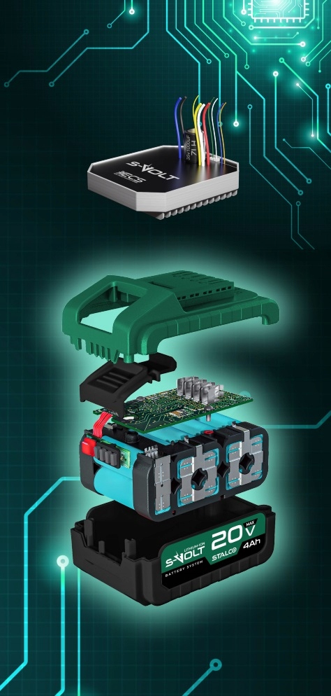 STALCO S-VOLT to nowy system bateryjny umożliwiający zasilaniejednym akumulatorem wielu elektronarzędzi.Baterie o pojemnościach 2 Ah i 4 Ah, kompatybilne z 11 urządzeniamioraz ładowarką, wyznaczają nowy standard Twojej wygody,oszczędności miejsca i pieniędzy oraz efektywniejszej pracy.
