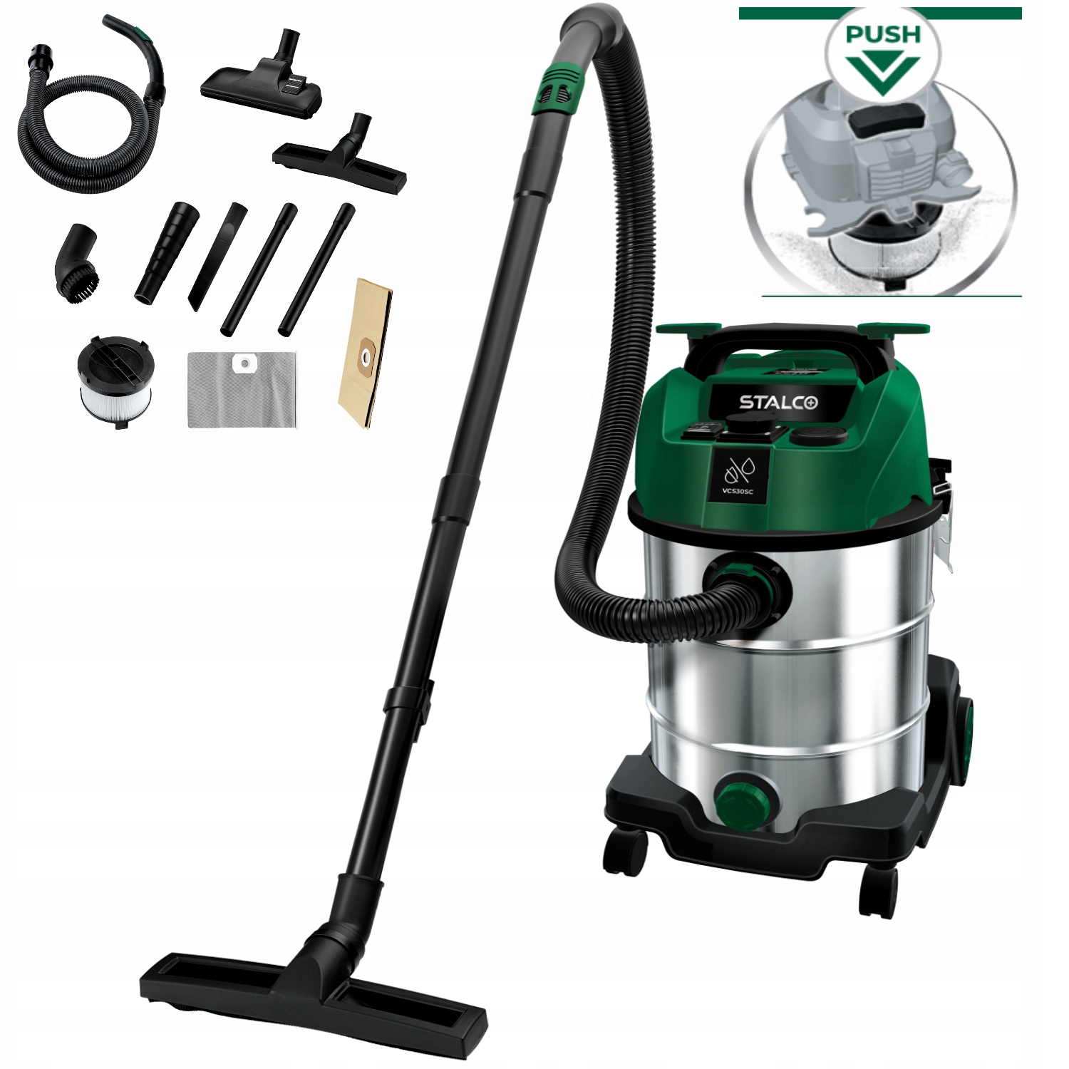 ODKURZACZ BUDOWLANY DO PRACY NA SUCHO I MOKRO VCS30SC STALCO 1200W