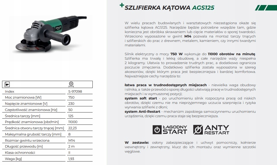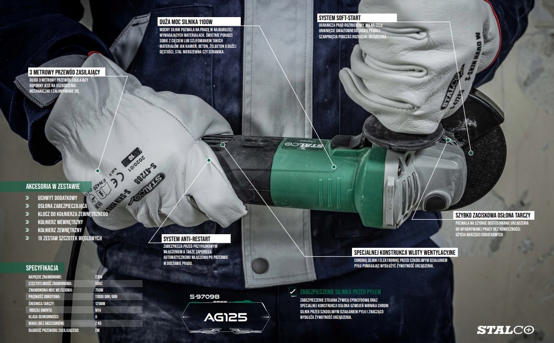 Szlifierka kątowa AG125 sieciowa Stalco 750 W 230 V