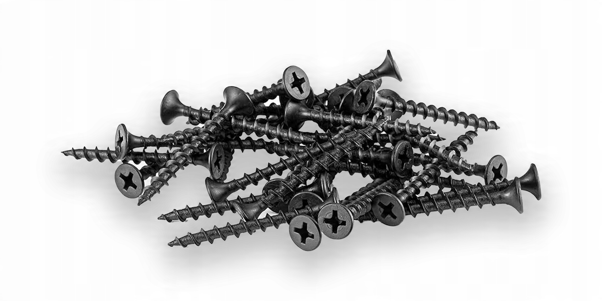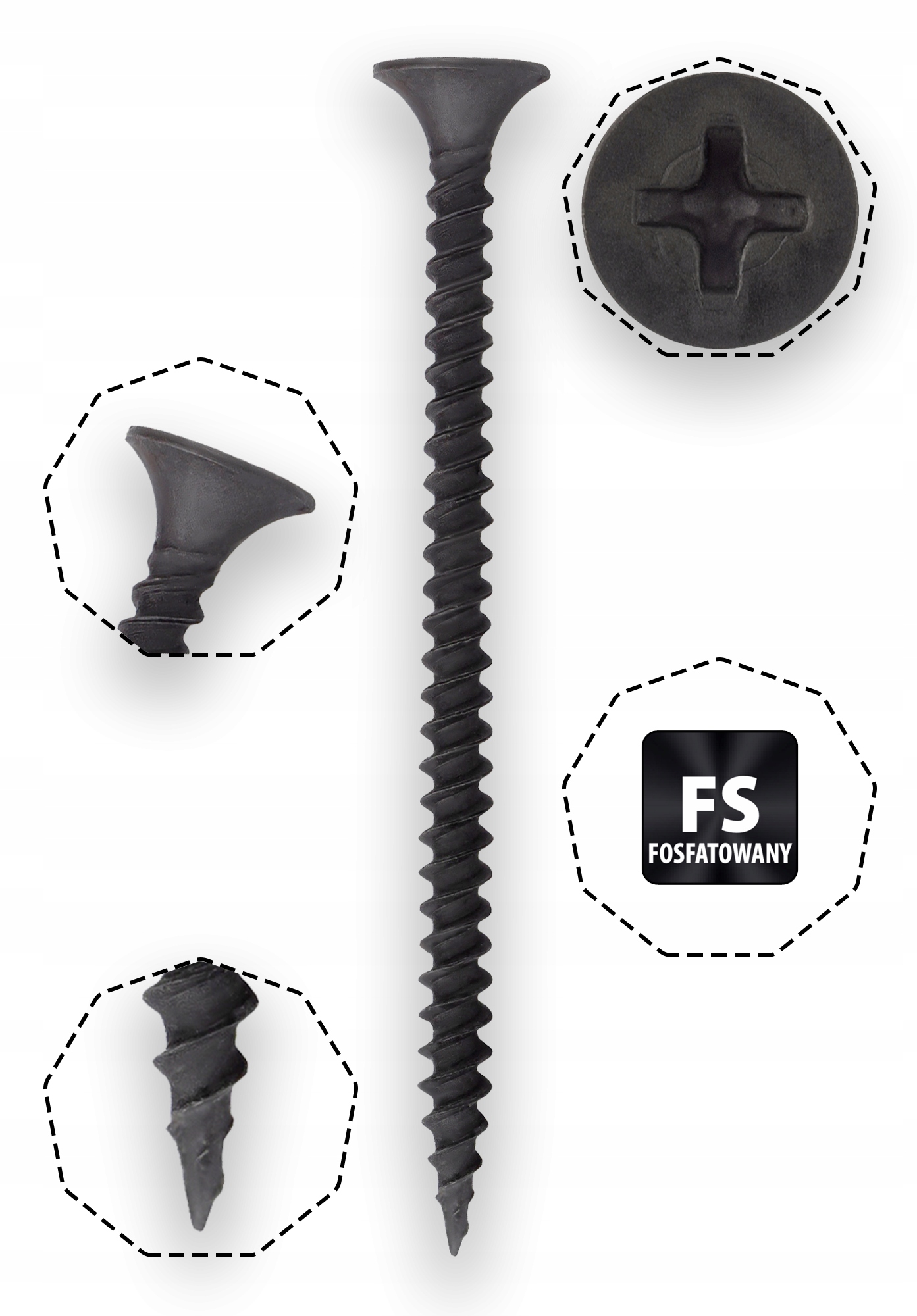 Wkręty wykonane są ze stali węglowej pokrytej specjalną powłoką fosfatową.