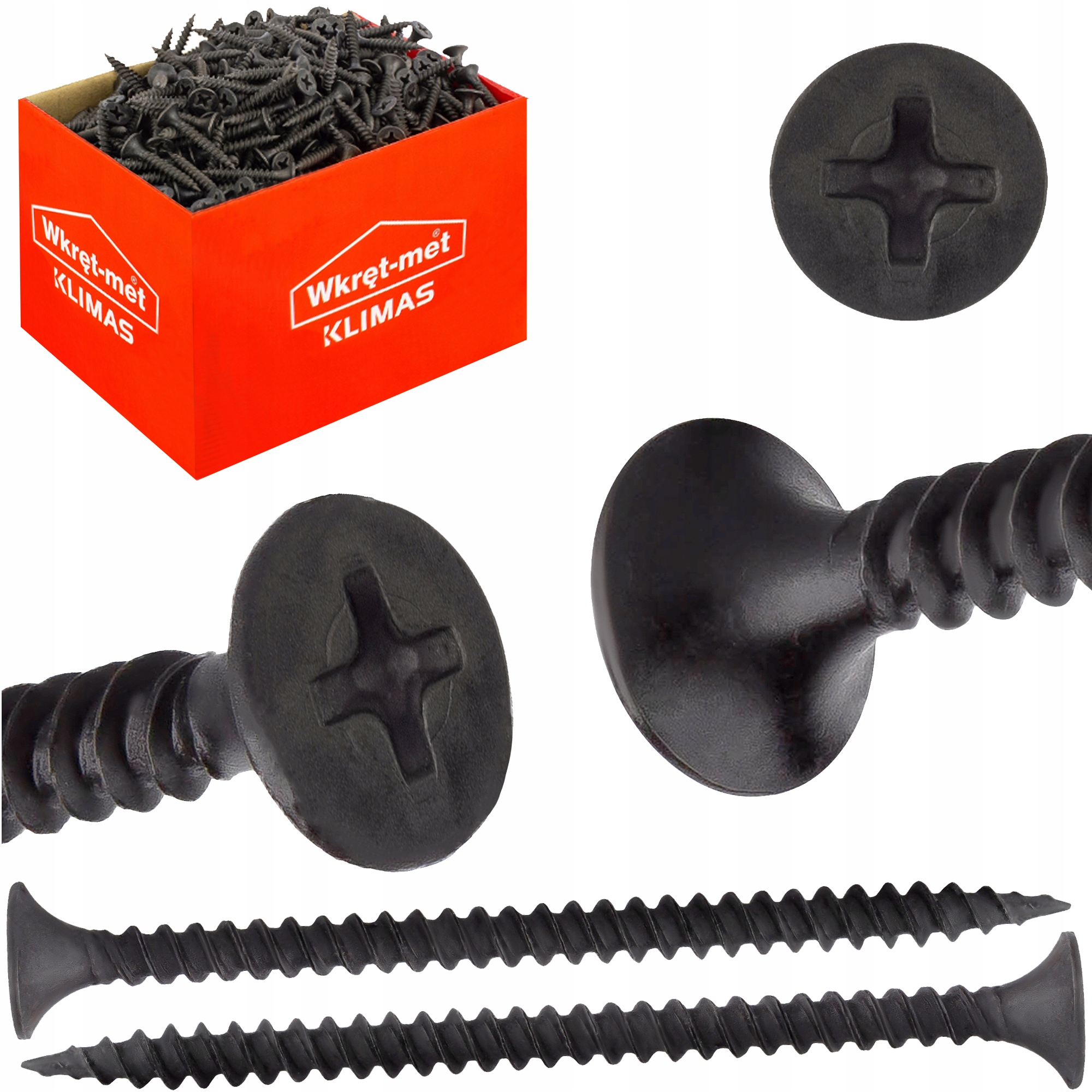 WKRĘTY DO DREWNA PŁYT GK 3,5x35mm CZARNE PH2 1000szt FOSFATOWANE KLIMAS